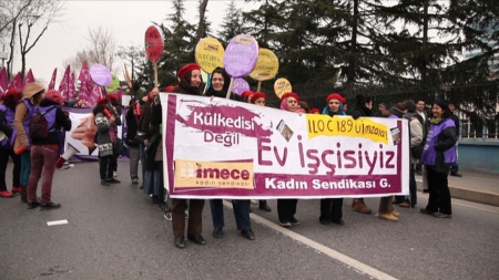 Sosyal güvencesi olmayan bir işte çalışan, iş kazası geçiren, cam silerken düşüp hayatını kaybeden ev işçilerinin sendikalaşma mücadelesine tanıklık eden filmde, görünmez bir iş yaptıkları için kendileri de “görünmeyen” kadınların, emeklerini görünür kılmak, ev işinin İş Yasası kapsamına alınması için verdikleri mücadeleyi izliyoruz.