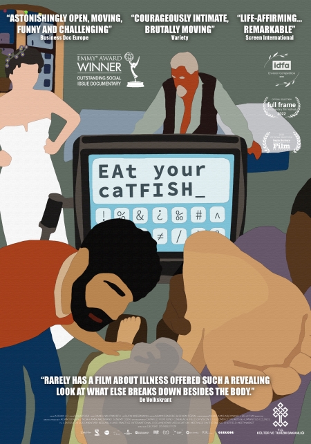 ALS’li yıllar Kathryn’i felçli ve 24 saat bakıma muhtaç bırakmıştır. Ancak zihni aktif ve sağlamdır. Solunum cihazına bağlı olarak ömrünün sonuna kadar böyle yaşayabilir. Fakat kocası Saïd duruma daha fazla katlanamamakta; New York’ta ana babasıyla yaşayan oğlu Noah, annesinin bakımı ve akademik yükümlülükleri arasında bocalamaktadır. Kathryn sık sık umutsuzluğa düşer, ancak kızının yaklaşan düğününü görmek için sabreder. Hiçbir ekip olmadan, tamamen Kathryn'in bakış açısından çekilen Eat Your Catfish, 930 saatlik görüntünün kurgulanmasıyla ortaya çıktı. Sonuç: Kırılma noktasındaki bir ailenin son derece mahrem ve alaycı bir portresi.